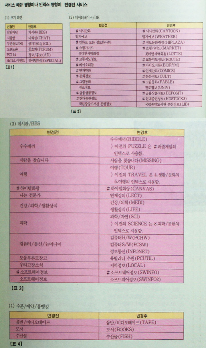 그리고, 본문의 내용들은 이미 PC 통신의 기본적인 내용을 알고 있는 독자를 대상으로 했으므로 해당 서비스 접속 절차, 메뉴 이용 방법 등의 기본적인 내용들은 제외했다.