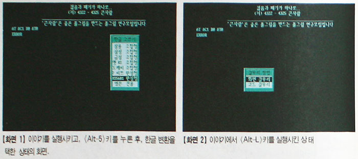 이 경우 사설 BBS를 들어가기 위해 다시 바람 프로그램에서 셋업을 잡을 필요 없이, 한글 변환<Alt-5>을 시켜 주면 된다. 전화 번호를 등록할 때, 사설 BBS에서 쓰는 한글을 지정해 놓아도 같은 효과를 얻을 수 있다.