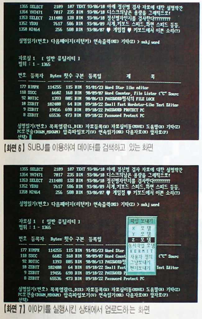 데이터들의 제목에 주어진 문자열이 있는지 검색한다. 그리고, 해당되는 문자열이 있는 제목만을 리스트 (List)하게 된다. 특히 공개 자료실에서 SUBJ 명령을 이용하면 상당히 편리할 것이다.