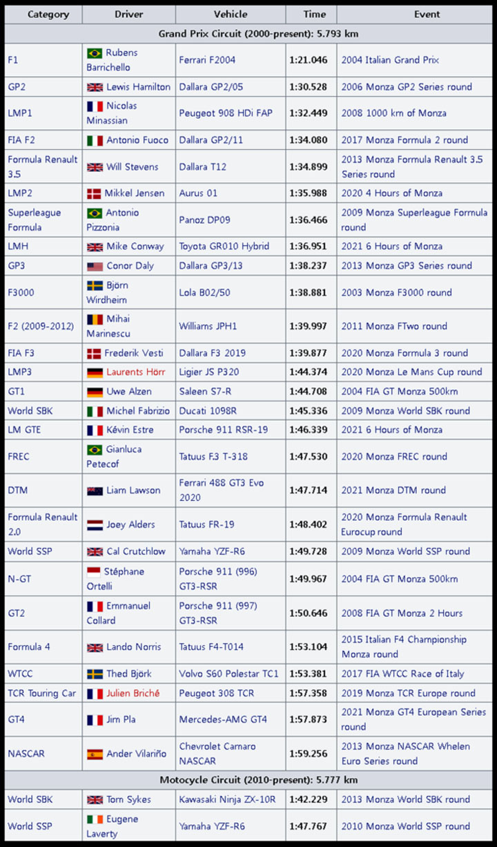 몬자 서킷 각종 기록들