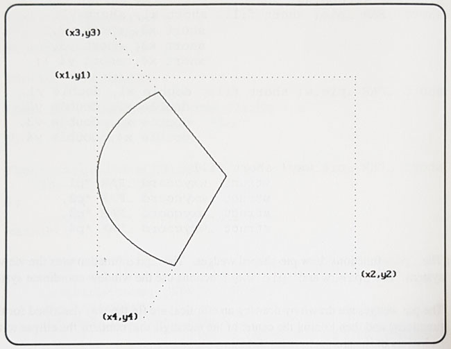 The arc ends at the point on this ellipse that intersects the vector from the centre of the ellipse to the point (x4, y4). The arc is drawn in a counter-clockwise direction with the current plot action using the current color and the current line style.