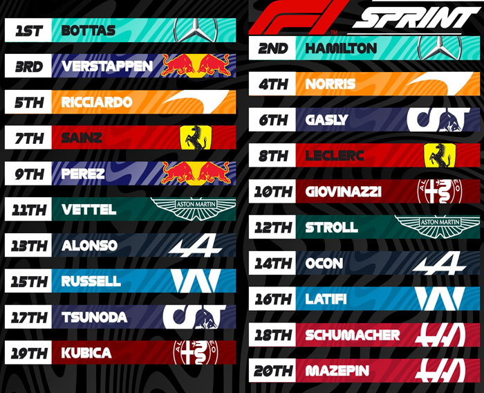 (F1 2021 Italy GP Sprint Qualifying Results)