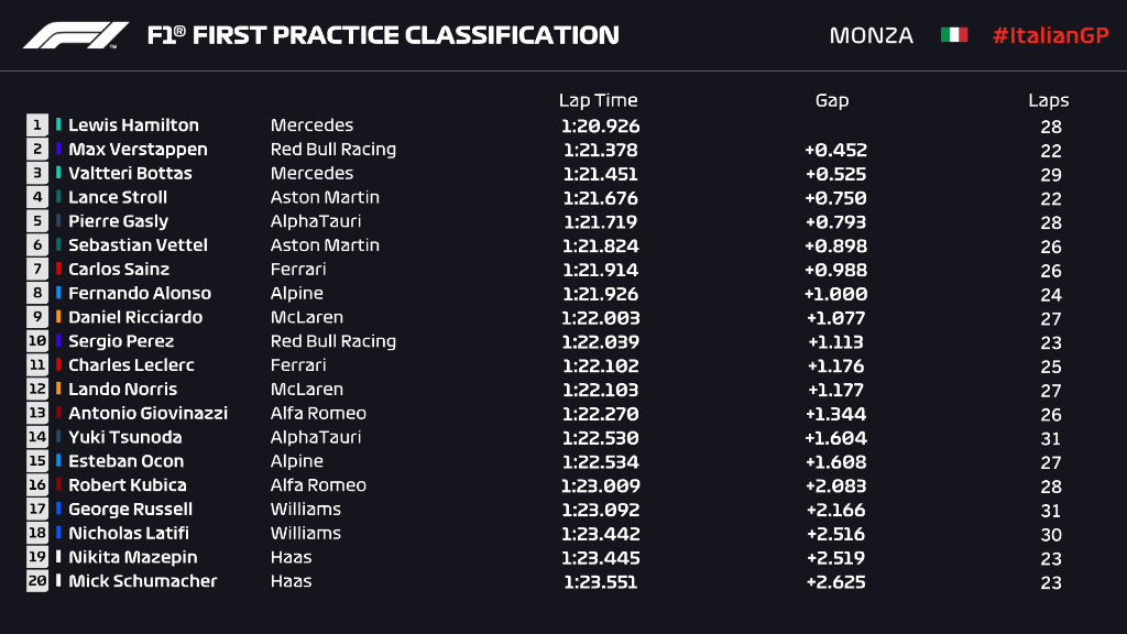 | F1 2021 이탈리아 그랑프리 레이스 결과 (F1 2021 Italy GP Race Results) (1) | 2021.09.12 |