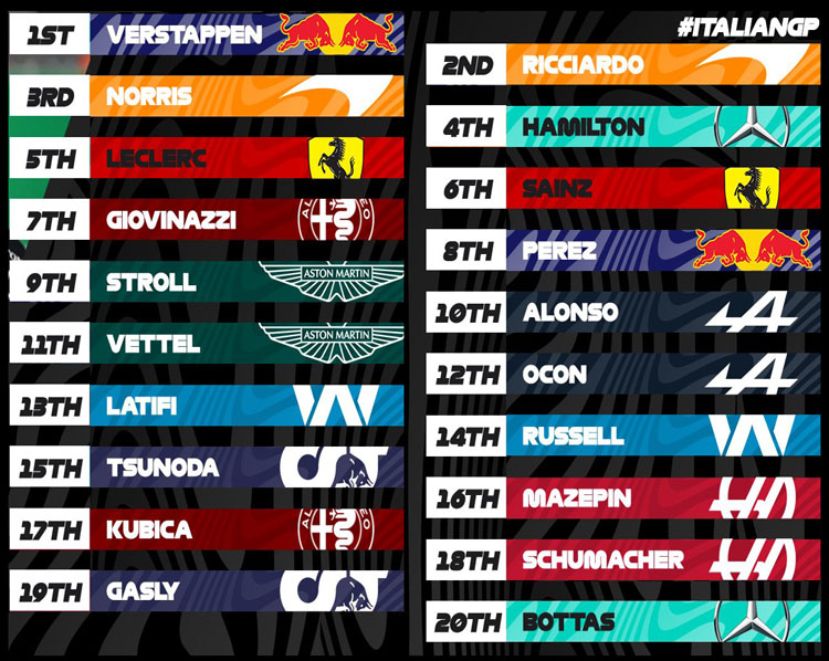 (F1 2021 Italy GP Race Results)