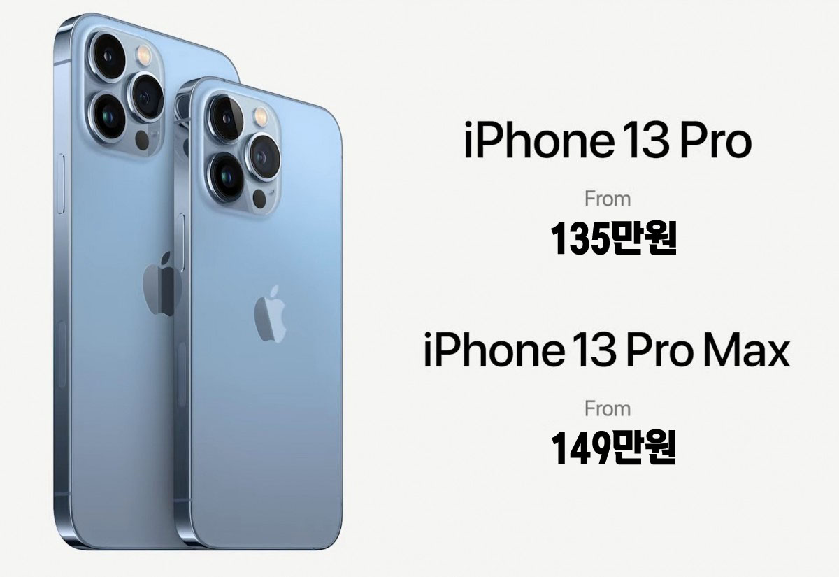 아이폰13 시리즈 국내 가격은 아이폰13 미니 모델이 95만원이고 아이폰13 기본모델은 109만원입니다. 그리고 아이폰13프로 모델이 135만원이고 아이폰13 프로 맥스가 149만원부터 시작되비다. 또한 아이폰13 프로 맥스 1TB 모델은 217만원입니다.