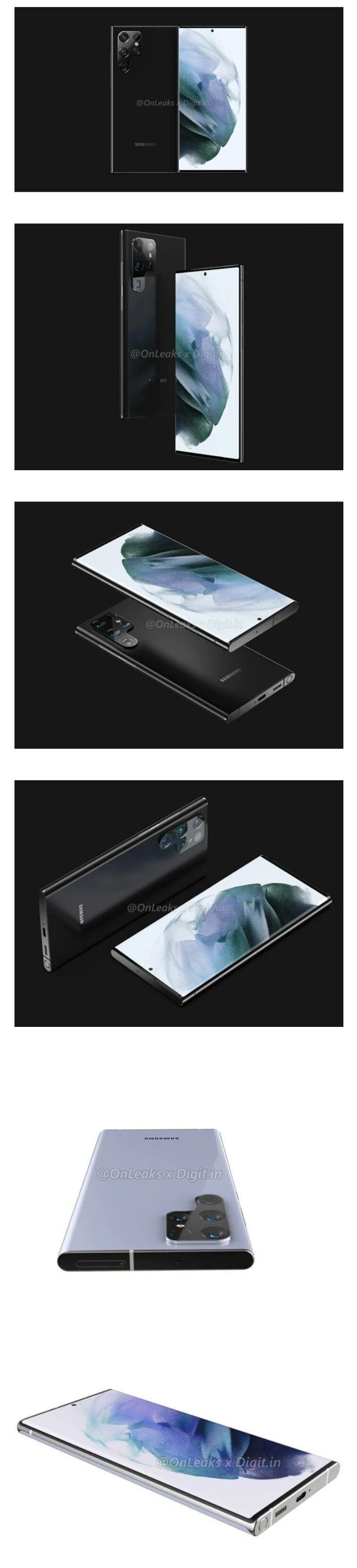 유출된 갤럭시 S22 울트라(혹은 S22 노트)의 모습
