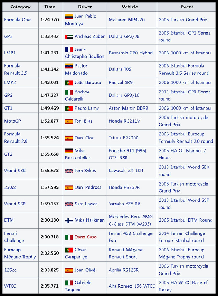 이스탄불 파크 서킷 각종 기록들