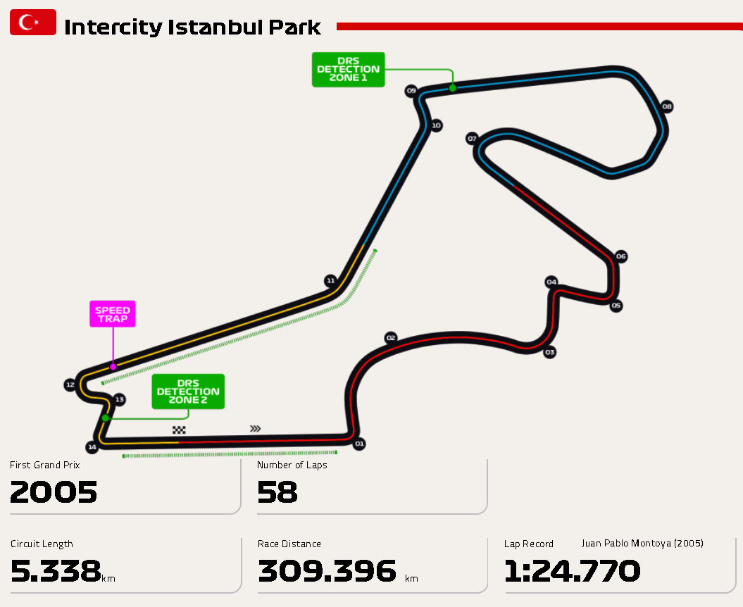 이스탄불 파크는 2005년 8월 21일에 개장한 서킷으로 터키 이스탄불에서 동쪽으로 대략 30km 가량떨어진 곳에 위치해 있습니다. 이스탄불 파크는 F1 서킷중에서 반시계 방향으로 주행하는 몇 안되는 서킷으로 5.338km의 길이에 15개의 코너가 있는 트랙으로 125,000명의 관중을 수용할 수 있으며 메인 스탠드는 25,000명을 수용할수 있도록 되어 있습니다.