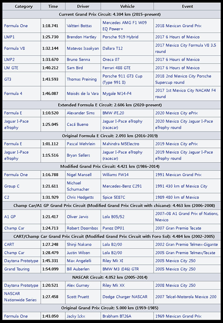 Autódromo Hermanos Rodríguez 서킷 각종 기록들