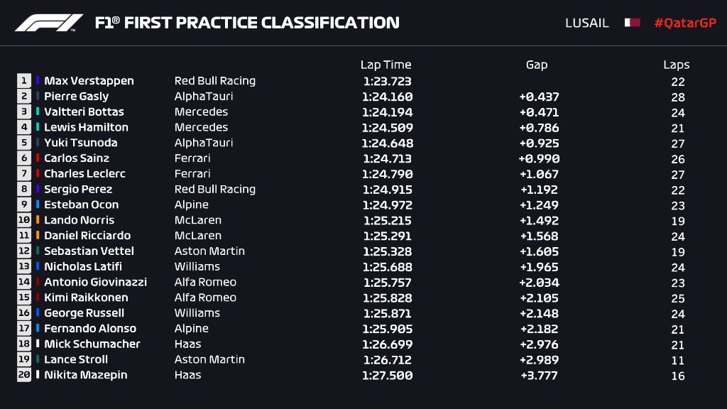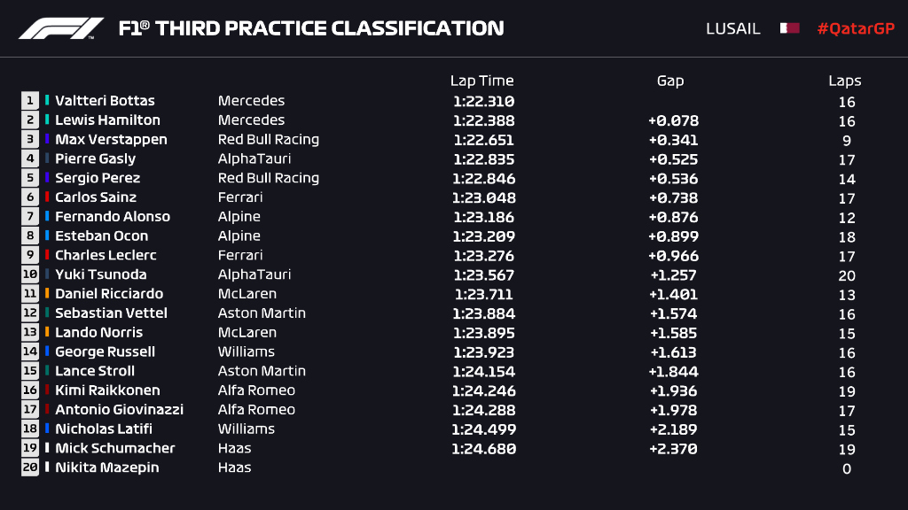 (F1 2021 Qatar GP Qualifying Results)