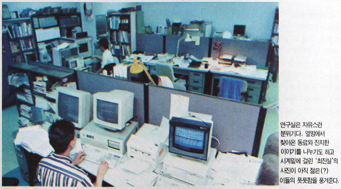 "전엔 컴퓨터를 연구하는 사람들만 컴퓨터가 있었죠. 희소성도 있고 해서 폼도 났었는데, 지금이야 컴퓨터없는 연구소가 있습니까. 컴퓨터가 없이는 연구를 제대로 진행할 수 있는 분야가 없죠. 그만큼 컴퓨터는 어느 한 곳 참녜하고 있지 않은 분야가 없을 정도로 주변 학문과의 연계는 필연적"이라고 연구소의 출판과 자료 관리 업무를 총괄 담당하는 박창현 박사는 말한다.