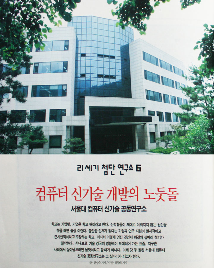 관악산이 에둘러 있는 서울 구석에 앉은 서울대학안에서도 한참을 쑥 들어간 곳. 6월 대학가 분위기라고 하기에는 낯설기까지 한 적막함이 감도는 관악산 산자락 한켠. 그곳에 서울대 컴퓨터 신기술 공동연구소(이하 신기술 연구소)가 있다.