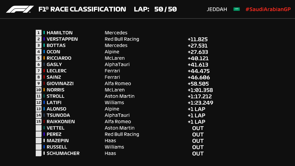 (F1 2021 SAUDI ARABIA GP Race Results)