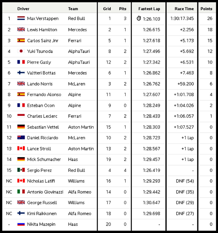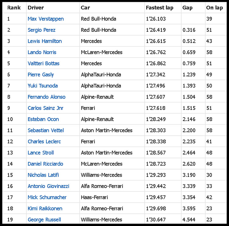 (F1 2021 Abu Dhabi GP Race Results)