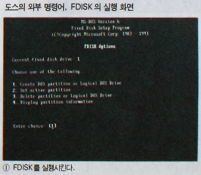 이러한 작업을 담당하는 것이 도스의 외부 명령어인 FDISK.COM이다. 이것을 실행시켜서 자신의 용도에 맞게 파티션을 정한 후 빠져나오면 컴퓨터는 재부팅을 하게 된다.