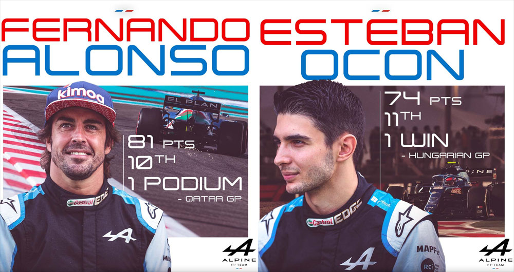 드라이버 : 페르난도 알론소 14번, 에스테반 오콘 31번