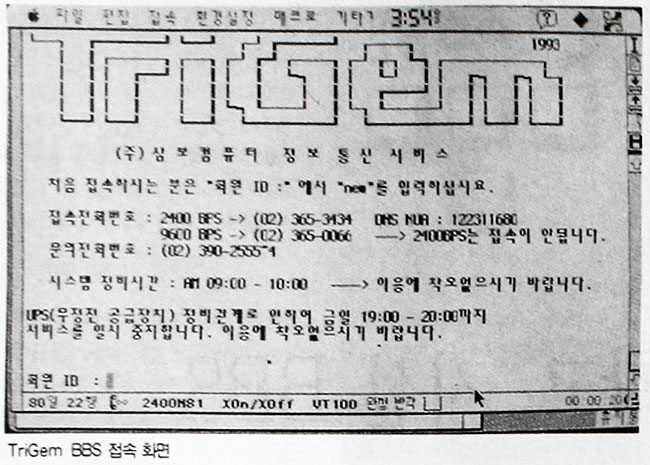 TriGem BBS의 특징은 트라이젠에 관한 모든 제품 사용 문의 및 답변을 해 주며 상위 기종으로의 업그레이드에 관한 모든 정보 및 소프트웨어를 제공해 준다(제품과 함께 제공되는 S/W). 또 신제품 정보와 제품 구입처 (대리점) 안내, 자료실에서의 공개 소프트웨어를 서비스하고 있다.