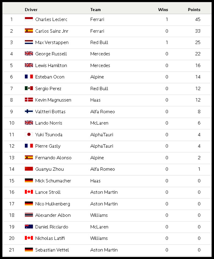 | F1 2022 - 사우디 아라비아 그랑프리 예선 결과 (F1 2022 Saudi Arabia GP Qualifying Results) (0) | 2022.03.26 |