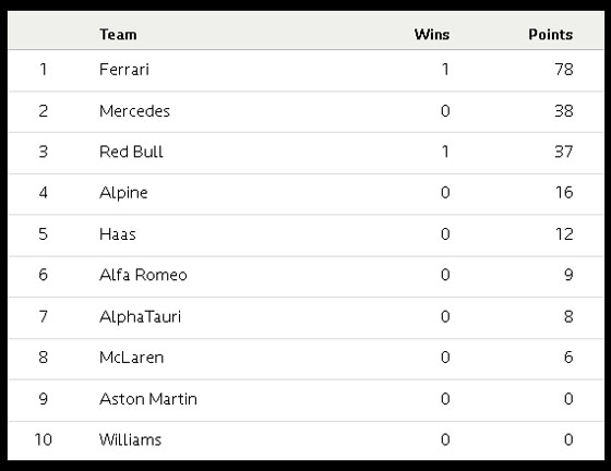 | 1 | 바레인 GP | 르끌레르 | 르끌레르 | 르끌레르 | 페라리 |