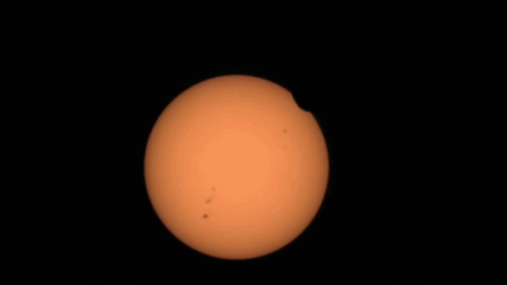 NASA의 화성 탐사 로버인 퍼서비어런스(Perseverance)가 탑재된 Mastcam-Z 카메라 시스템을 사용해 화성의 두 위성 중 하나인 포보스(Phobos)가 태양을 가로지르는 화성 일식 현상을 촬영했습니다. 이번에 찍은 영상은 화성 표면에서 찍은 이전의 그 어떤 영상보다 크게, 선명하며 높은 프레임을 보여주는 영상입니다.