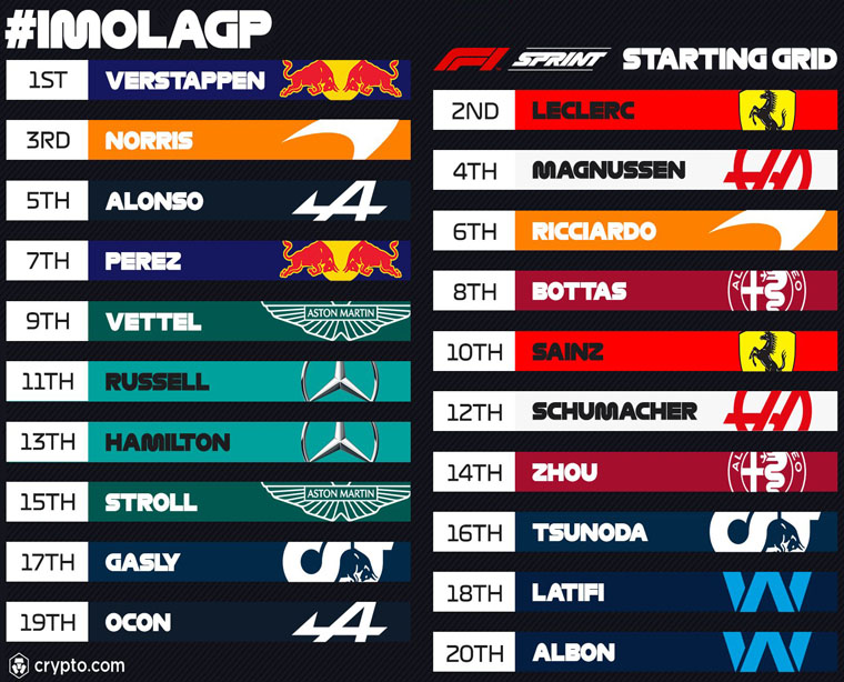 F1 2022 에밀리아-로마냐 그랑프리 퀄리파잉, 스프린트 결과