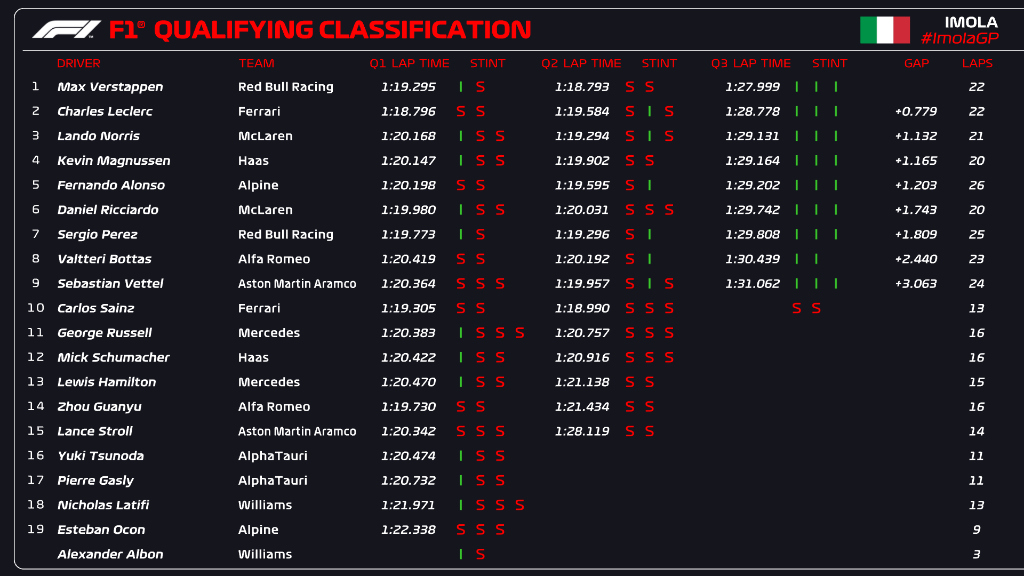 (F1 2022 EMILIA-ROMAGNA GP Sprint Qualifying Results)