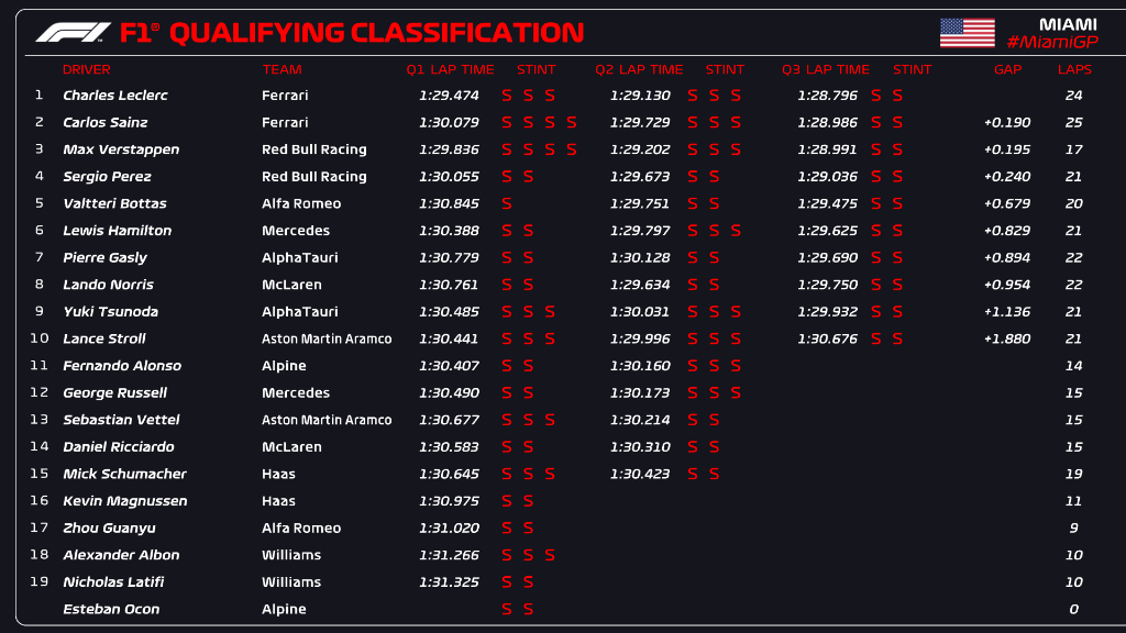 (F1 2022 Miami GP Qualifying Results)