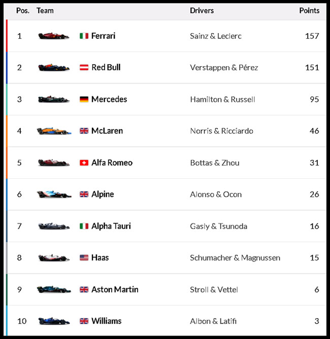F1 2022 시즌 전체 상황표
