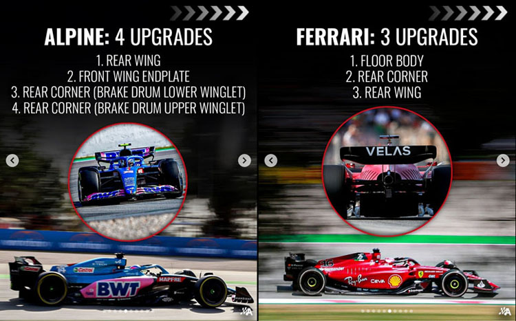 멕라렌, 애스턴 마틴, 알파로메오, 메르세데스, 알핀이 상당히 많은 부분에서 업데이틀 했으며 그외 팀들도 2,3군데 정도의 업데이트를 가지고 왔습니다. 하스팀은 업데이트를 전혀 하지 않았으며 몇 경기 더 지켜본 후에 업데이트를 할 것이라고 전해졌습니다.