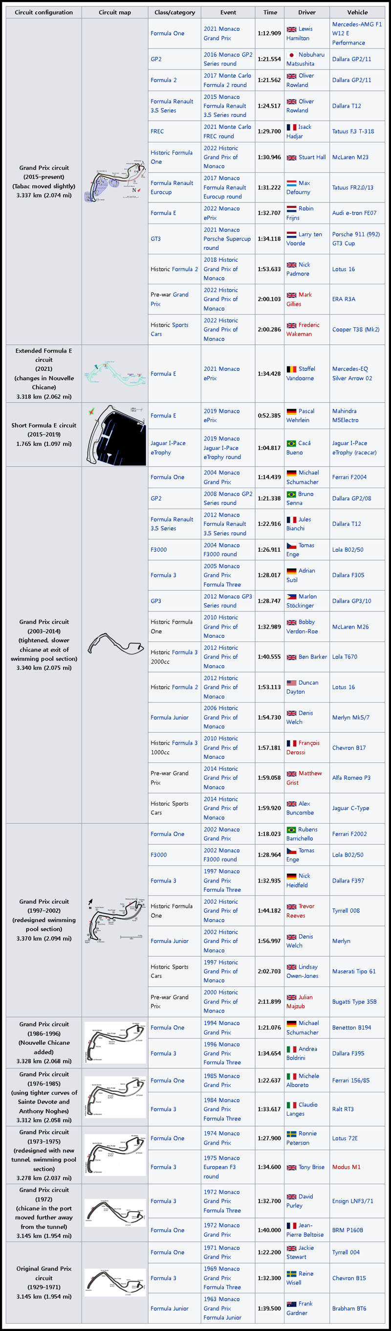 몬테카를로 서킷 각종 기록들
