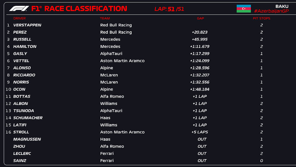 아제르바이잔 그랑프리 레이스 결과 (Race Results)