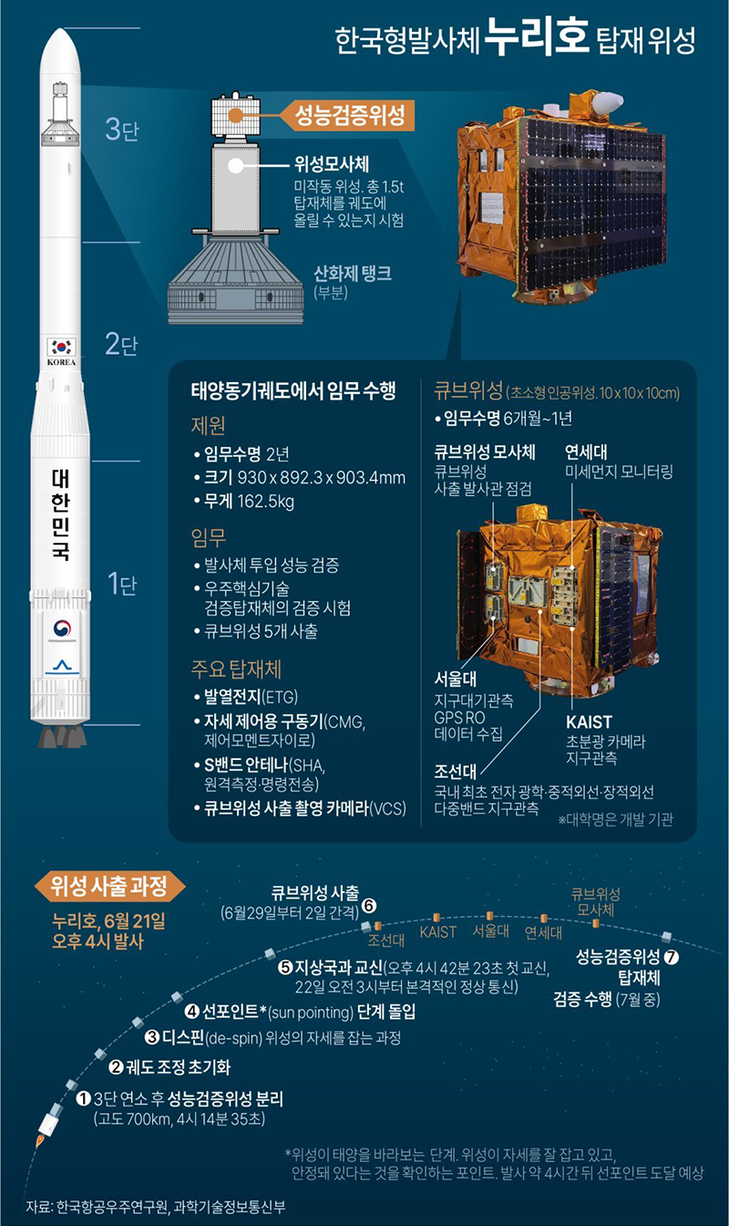 누리호에 탑재된 성능검증위성 정보