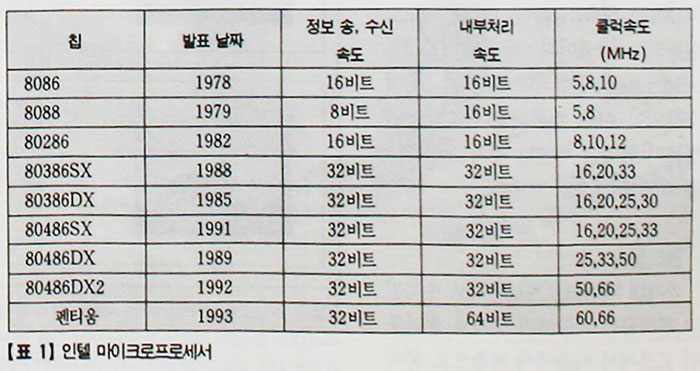 차세대 마이크로프로세서로 주목받는 펜티움은 지금까지 숫자로 불리우던 프로세서 이름에서 처음으로 문자로 된 이름을 가진 인텔 제품이다. 586이냐 아니냐라는 논란도 있고, 구입하기도 엄청나게 비싼 가격때문에 일반 사용자들에게는 눈요기거리로만 남아있다.