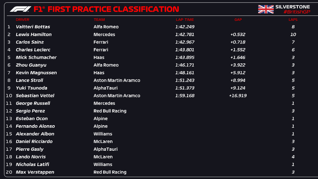 영국 그랑프리 예선결과 (Qualifying Results)