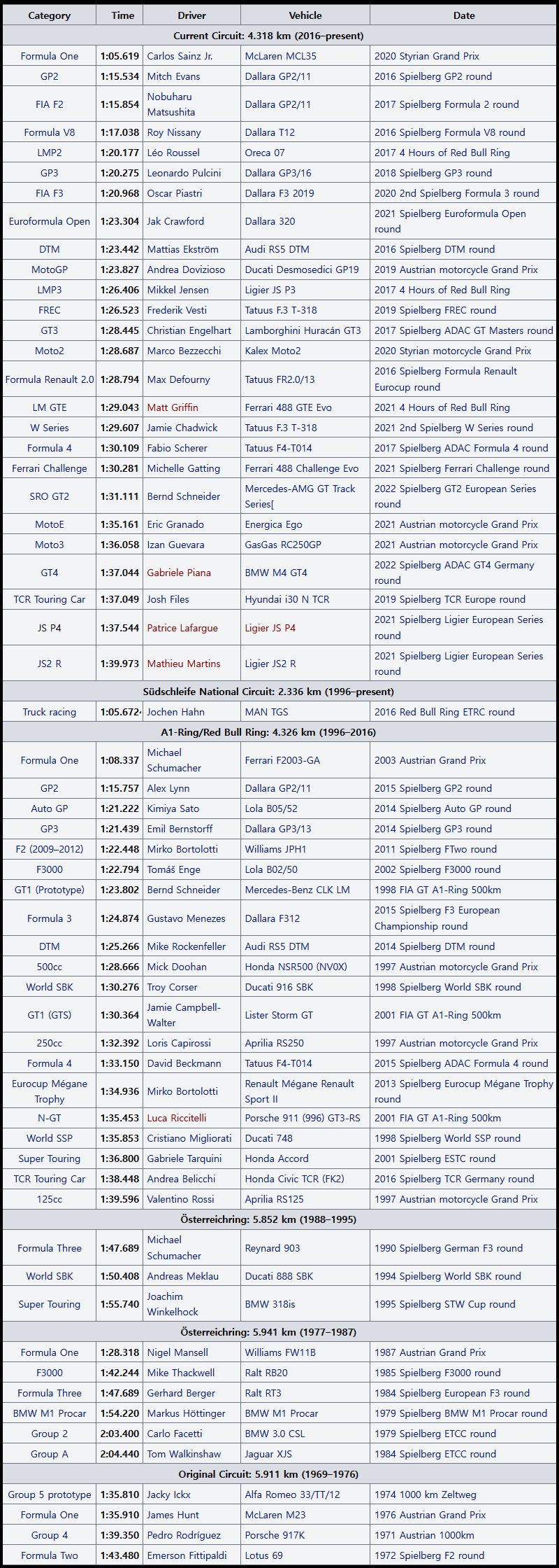 이름에서 보듯이 레드불의 홈 서킷으로 F1서킷중에서 가장 적은 10개의 코너로 이루어진 4.318km의 짧은 트랙으로 고속 서킷에 해당합니다.