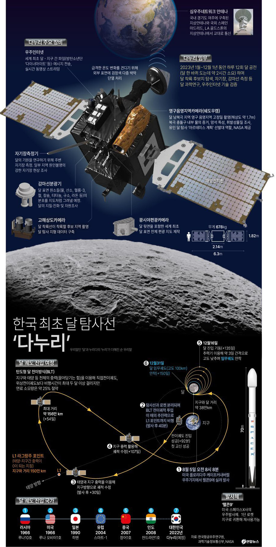 우리나라 최초의 달 탐사선 '다누리 호' 발사 성공