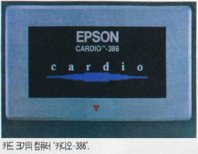 엡슨측은 현재 8086이나 486 급의 ‘카디오'도 개 발 중에 있다고 한다. 사용 용도로는 수퍼마켓 등에서 사용되고 있는 POS 시스템이나 FA 등에 활용될 것으로 보인다. 10월에 출하될 예정인 이 제품의 예상 가격은 메모리 1메가바이트 모델이 4만엔, 4메가바이트 모델이 6만엔 정도 책정하고 있다.