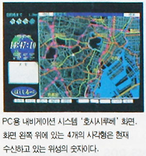 노트북용 내비게이션 시스템 (Navigation System)이 개발되었다. 일본 뉴웨이브가 개발한 최초의 PC용 내비게이션 시스템인 '호시시루베'는 전원 어댑터, GPS(Global Position System) 수신기, GPS 안테나, 프로그램 디스크, 지형 디스크, RS-232C 케이블의 세트로 판매된다.