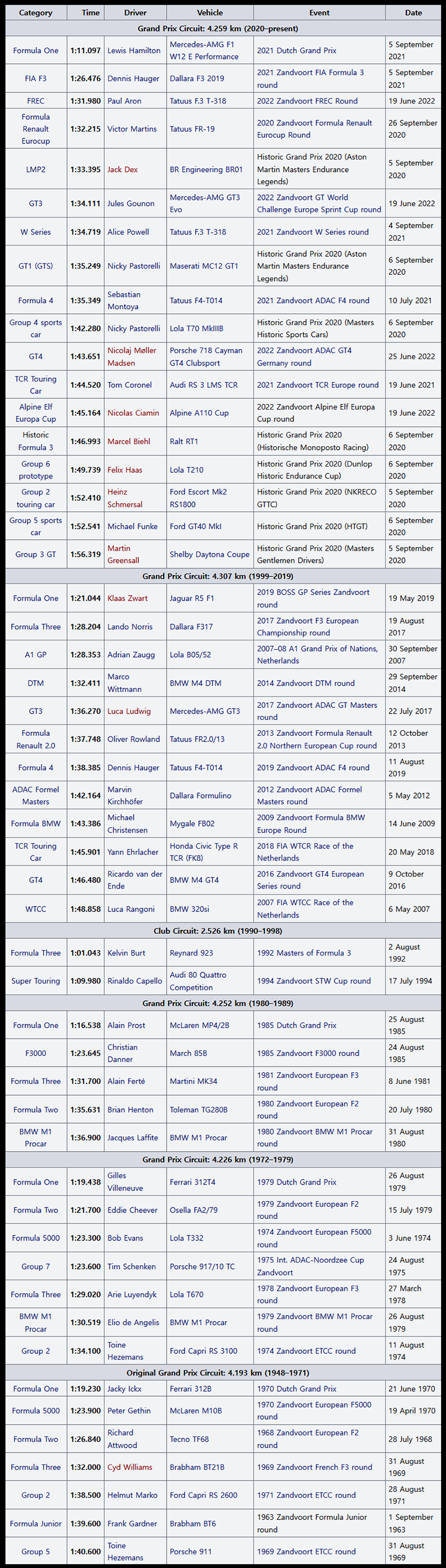 잔드부르트 서킷은 1948년 개장한 트랙으로 수도인 암스테르담부터 서쪽으로 대략 25km 정도 떨어진 해안 휴양도지 잔드부르트에 위치해 있습니다. 해변 휴양지인 잔드부르트는 인구가 약 17,000명의 작은 도시입니다.