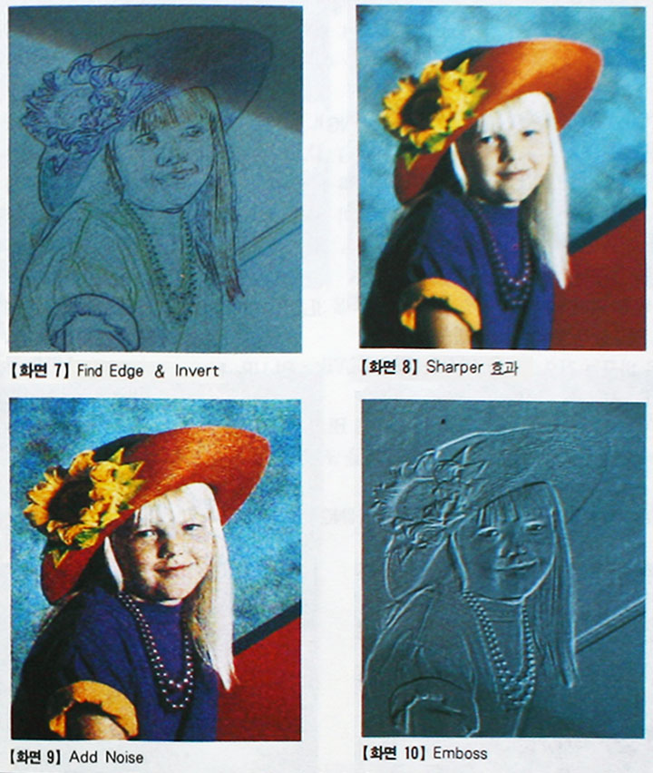 포토 스타일러의 FILTERING 효과를 제대로 익히려면 여러가지 반복적인 실험이 요구된다. 다양한 이미지들을 불러들여서 수치값들을 변화시킴으로써 마음에 드는 그림이 나올때까지 효과를 익혀 보자.