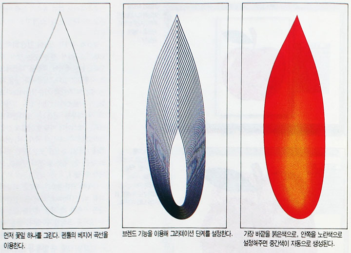 그러한 기본적인 기술에 다시 한번 투자 한다면 코렐드로우 같은 객체형 벡터 드로잉 소프트웨어로도 멋진 이미지를 만들수 있는 능력이 컴퓨터 그래픽 그리고 앞으로의 멀티미디어 분야까지 새로운 실력자가 될수 있으리라 믿는다.