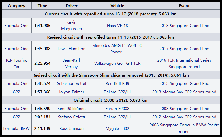 마리나 베이 서킷 기록들