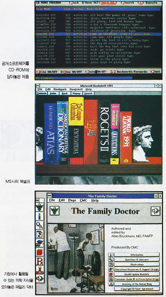국내 제품 중에는 '오성식 생활 영어'가 그 좋은 예라고 볼 수 있다. 업계의 관계자들에 따르면 국내의 CD-ROM 사업은 대부분 출판과 교육 분야에 집중될 것으로 전망하고 있다.