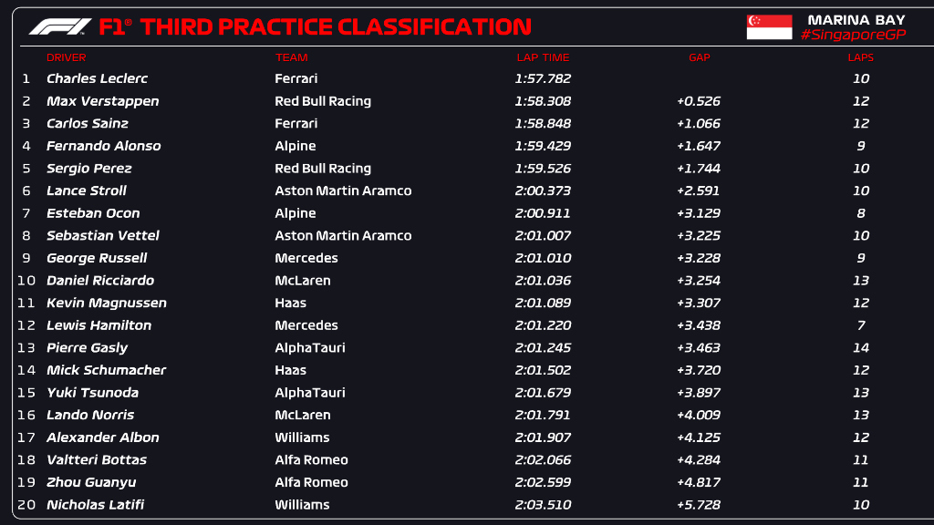 (F1 2022 Singapole GP Qualifying Results)