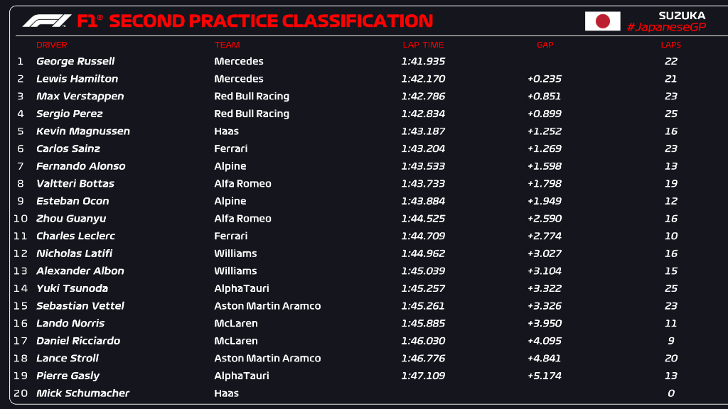 F1.2022.R18 - 일본 그랑프리 예선 결과
