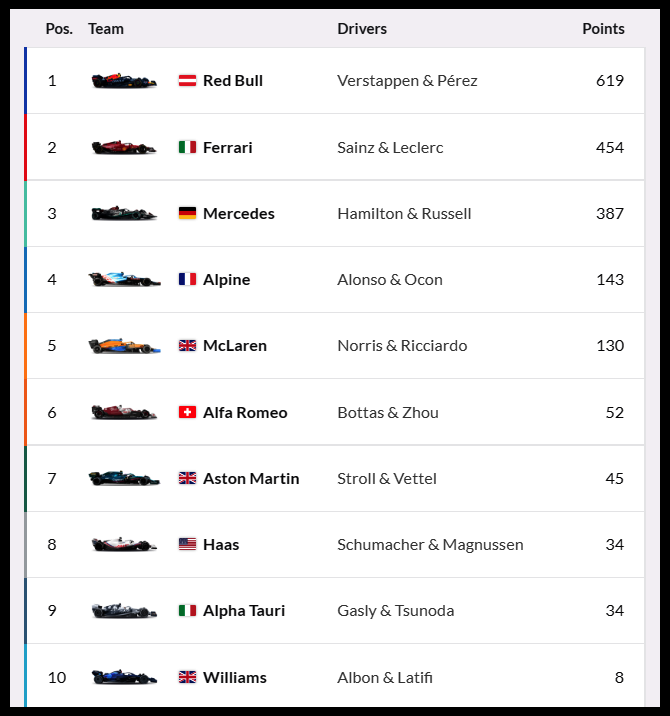 | F1.2022.R19 - 미국 그랑프리 레이스 결과( F1 2022 US GP Race Results ) (0) | 2022.10.23 |