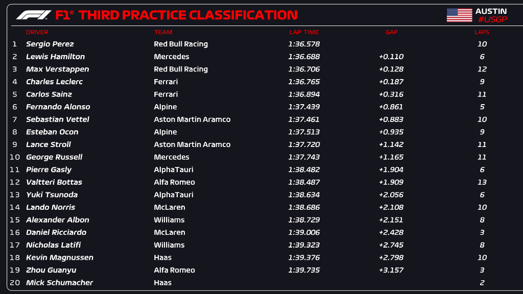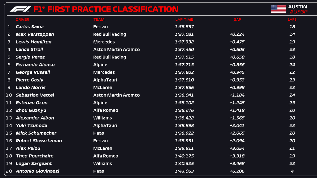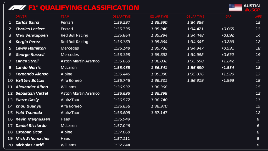 (F1 2022 USA GP Qualifying Results)