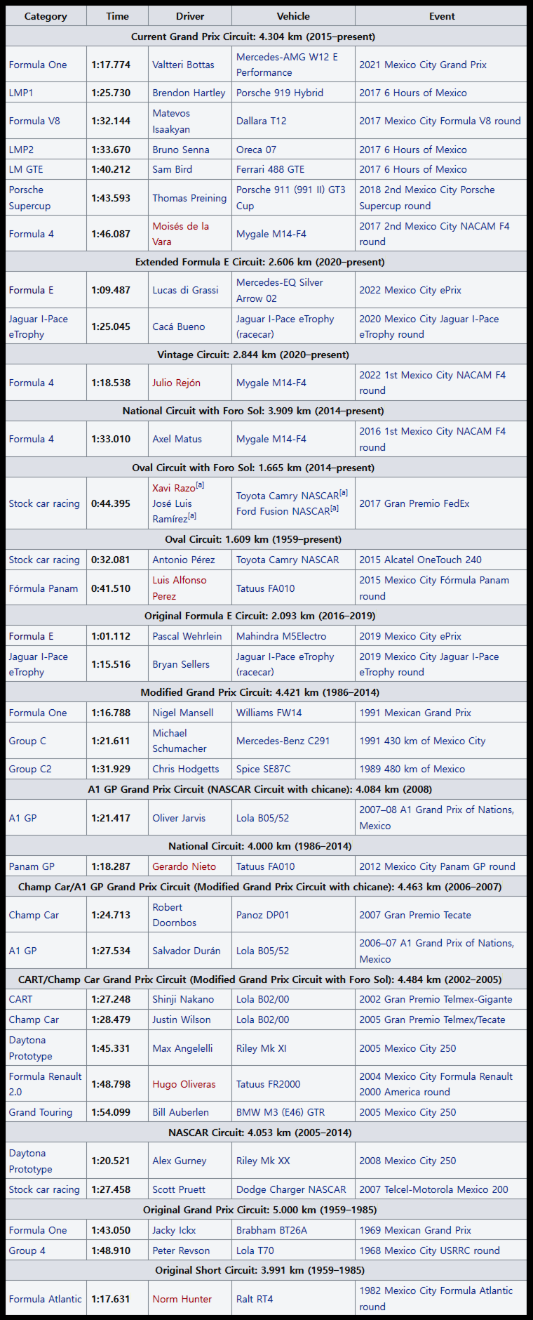 Ricardo Rodríguez는 1961년과 1962년에 F1 그랑프리에 참여했던 드라이버인데 1962년 멕시코 그랑프리를 위해 연습하던 도중 사망하면서 이 이름을 가지게 되었습니다.