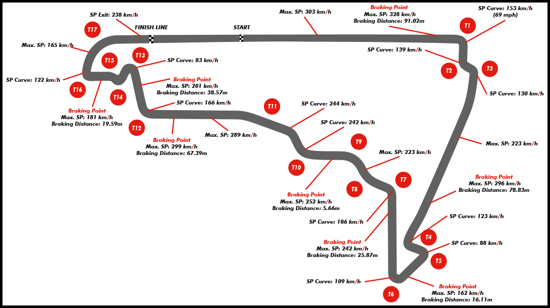 멕시코하면 아무래도 높은 해발고도를 빼놓을수 없듯이 Autodromo Hermanos Rodriguez 서킷 역시 해발 2천미터 넘는 곳에 자리 잡고 있습니다. 때문에 드라이버들은 상당히 호흡에 있어서 힘들수 있으며 체력적인 부분이 크게 영향을 줄 수 있습니다. 트랙은 1959년 오리지널 서킷에서 많이 바뀌지 않았습니다.