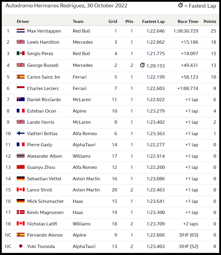 ( F1 2022 Mexico GP Race Results )